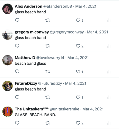 This whole time, I had been teasing stuff on Twitter and trying to make a meme of it. I had been really inspired musically by the first Glass Beach album, but also by the release strategy. They would be tweeting "glass beach band," retweeting everybody who said "glass beach band."