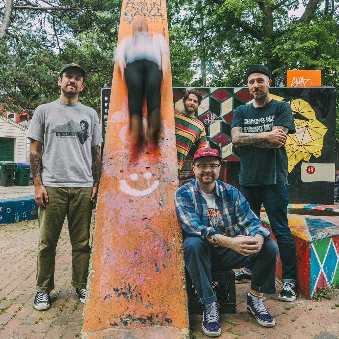It's a pic of the melodic hardcore band Praise, who just surprise-released three songs in an EP called Coming Up For Air, and commemorated the new music with a fresh promo photo in which guitarist Austin Stemper appears to be flying down a large concrete structure at the speed of light. I had some follow-up questions after seeing this photo, so I asked Richmond, VA-based photographer (and Praise bassist!) Chris Bavaria, who snapped it, a couple of questions about it.