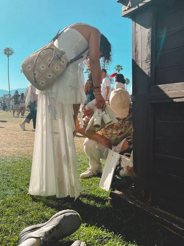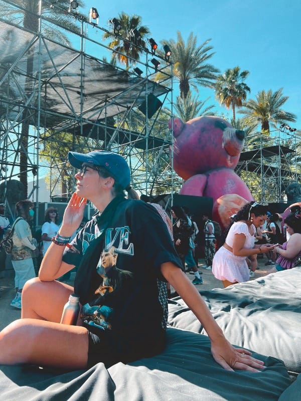 The druggiest crowd was obviously Charli XCX's. Maybe it was the clarity of sobriety, but I watched substance-fueled minidramas from all angles at my spot at the B3 light tower. Girls in spangled dresses cheersed each other with fat psychedelic champignons and then filmed each other dancing to "365," one by one taking their turn. A grown woman sobbed in the arms of a shirtless gay man, overcome by Brat power. So many poppers!! I kept my mask on to be safe.