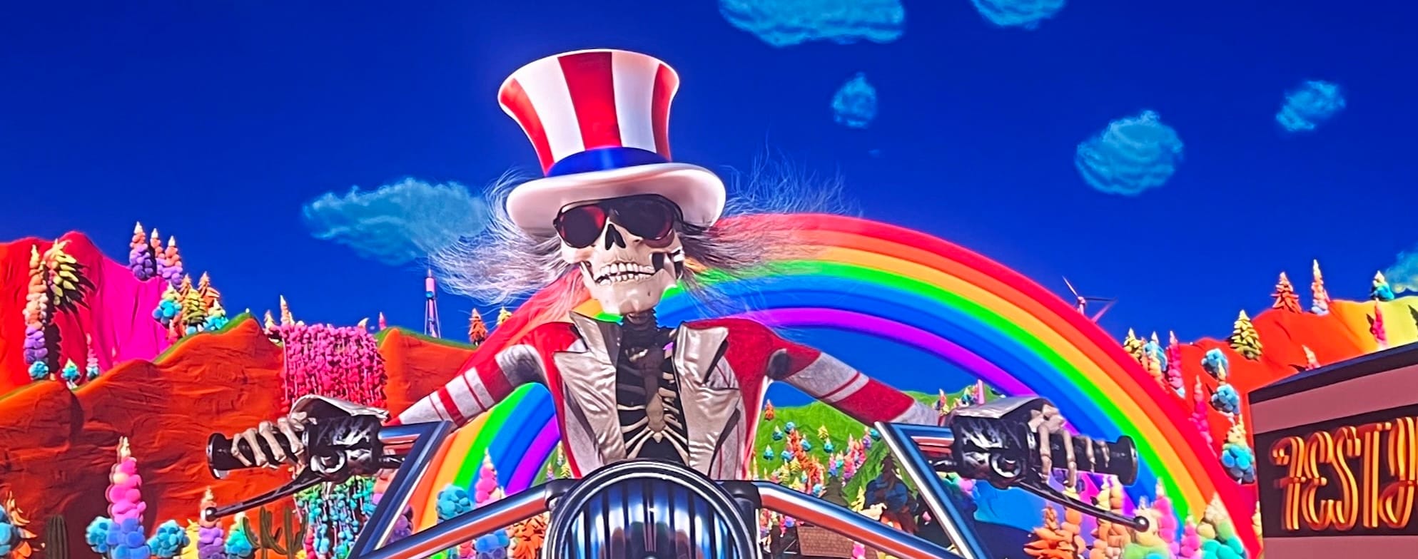 What was the music like? The music was very nice. I would not say the Grateful Dead is very aligned with my core taste in music—I tend to prefer music that is much faster, higher in intensity, more condensed, and more downright artificial-sounding than the Dead's bread and butter—but piped through the Sphere's speakers, and couched within the majesty of the visuals, and flanked by a sea of people all deeply enjoying the tunes, I really liked what I heard. It didn't quite register to me as "blues" or "rock" or "Americana" or whatever. Those categorical distinctions didn't make much sense in the moment. The music sounded lush and warm, and sometimes it sounded like an element of nature, or a nice, forgotten feeling. It was uplifting, and though there was some effort in the creation of the music, the baseline affect was one of ease. It sounded like something that belonged endemically on our planet.