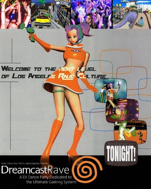 Taking it back even further ago, weeks ago, I want to shout out the CEO of nü-metal, Holiday Kirk, who has been throwing some amazing themed parties in the Los Angeles area under the umbrella of his flagship enterprise The Nu Metal Agenda. Chris and I went to his Dreamcast Rave ("a DJ Dance Party Dedicated to the Ultimate Gaming System") at the Moroccan Lounge and I had a blast. The theme entailed, loosely, music that came out around the short but sweet heyday of the Dreamcast (1998 - 2001 according 2 Wikipedia), and the party offered plenty of video game accoutrements, including various Sega sound effects + visuals, and a real Dreamcast you could play demo games on.