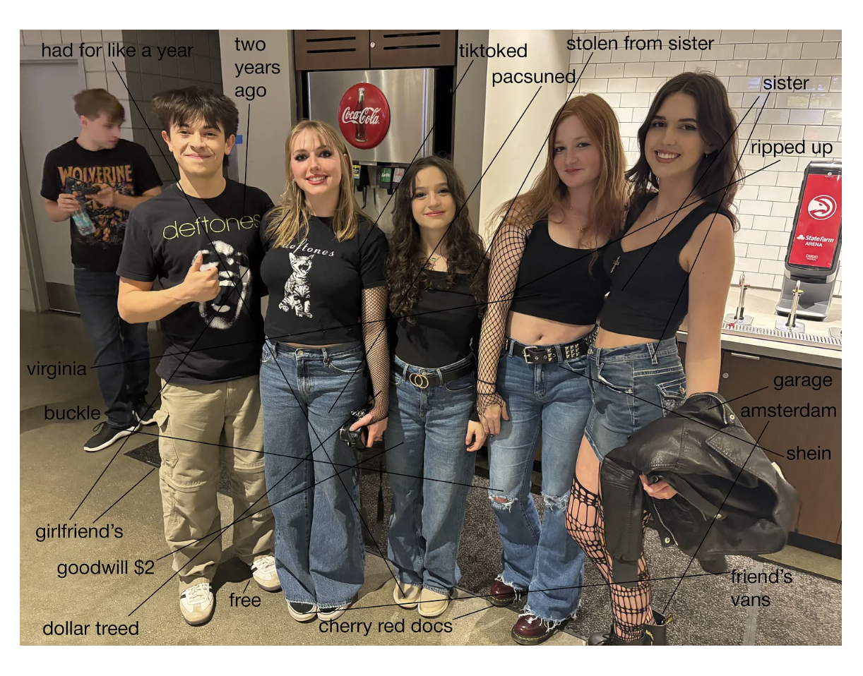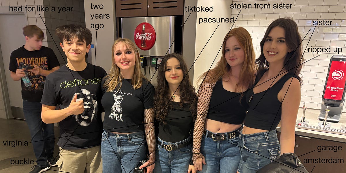 Which leads me to Biz Sherbert, who co-hosts a wonderful podcast called Nymphet Alumni, and has lately been writing a fashion newsletter called American Style. Her recent post about what people were wearing at a Deftones concert in Atlanta made me all misty. I loved reading about the person wearing three different Temu belts, and the girl wearing mostly Spirit Halloween.