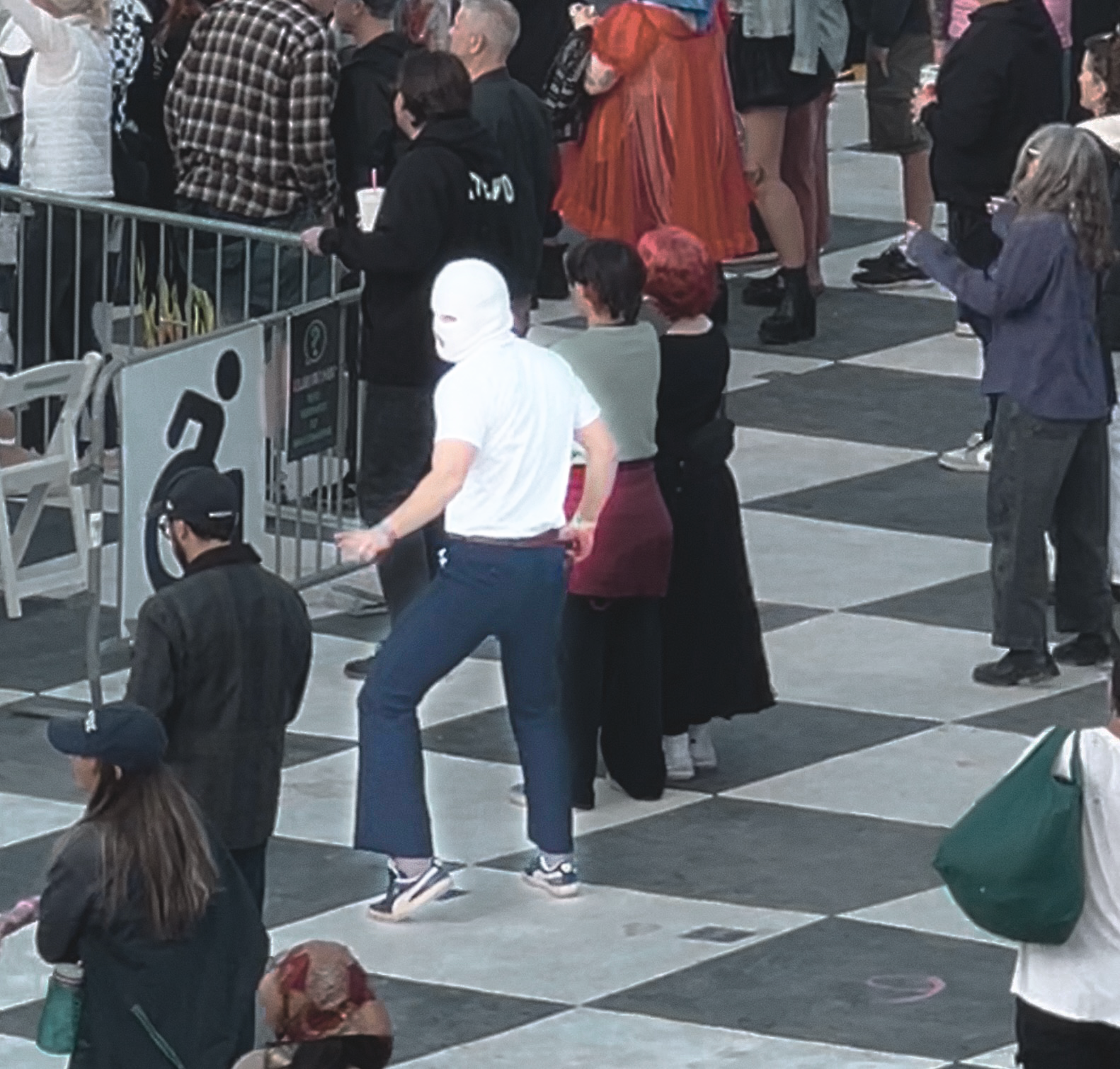 So it was Sunday. We were taking a load off in the upper section of the Days of '47 arena, having a nice time at Nation Of Language's set. Then I spied (with my little eye) a figure in black pants, a white t-shirt and a white balaclava. They were dancing—not in a contained floorspace, but all across the Mountain Stage audience. I watched them boogie from corner to corner, mixing fancy footwork with more interpretive motions, and seemingly knowing every contour of Nation of Language's music. It was especially mesmerizing up in the stands and seeing how many attendees weren't in a position to notice the apparition of Pure Fest Zest doing grapevines around them.